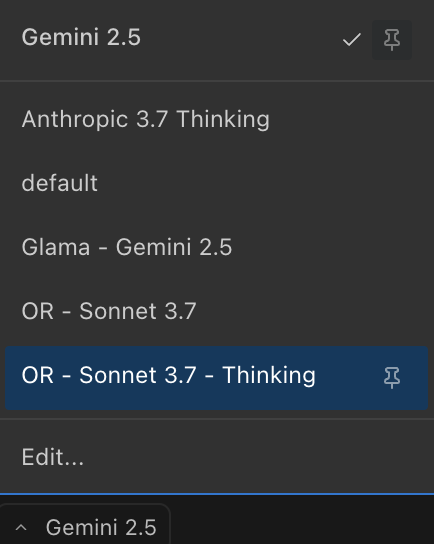 The API configuration dropdown now supports pinning your favorite profiles for quicker access: